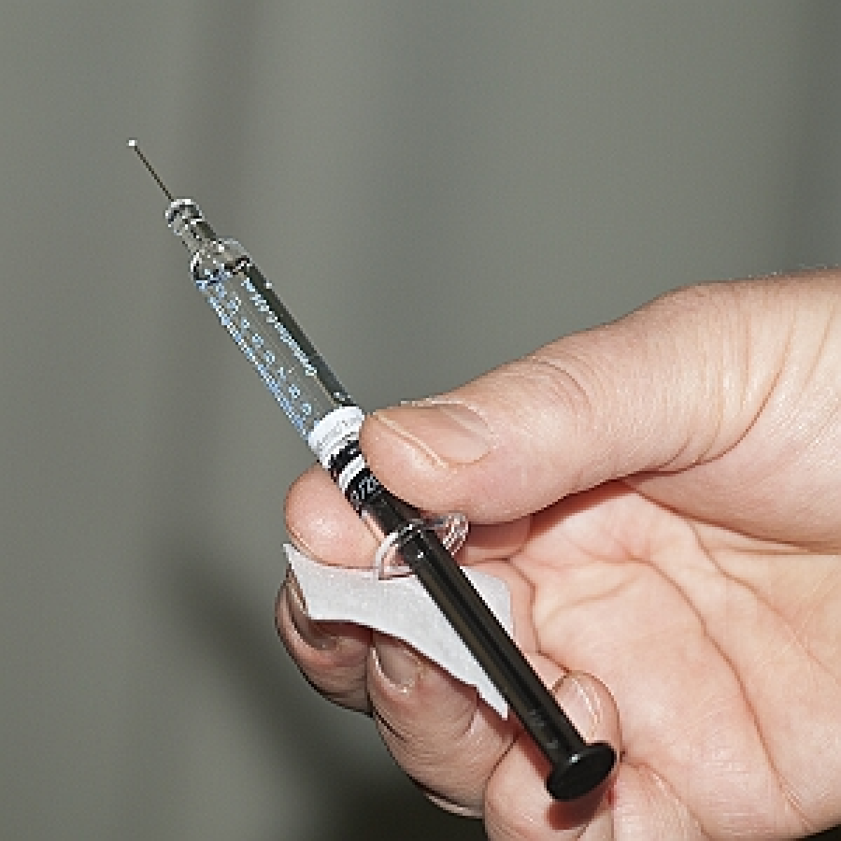 Strzykawkę uchwycić podobnie jak chwyta się długopis, a kciukiem i palcem wskazującym drugiej ręki należy uchwycić odkażony fałd skórny. Igłę strzykawki należy wbić w całości prostopadle do fałdu skórnego i delikatnie naciskając tłok wprowadzić pod skórę całą zawartość strzykawki. Następnie usunąć igłę z fałdu skórnego i uwolnić fałd skórny. W miejscu wstrzyknięcia może pojawić się niewielki siniak.